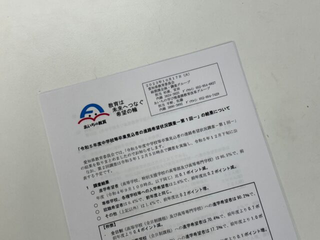 さて、先日愛知県教育員会から